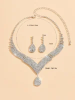 3pcs fashionable rhinestones, water droplets, necklaces, earrings, jewelry sets, women’s wedding accessories