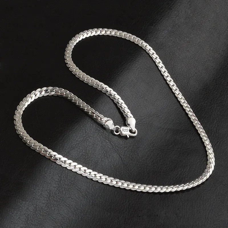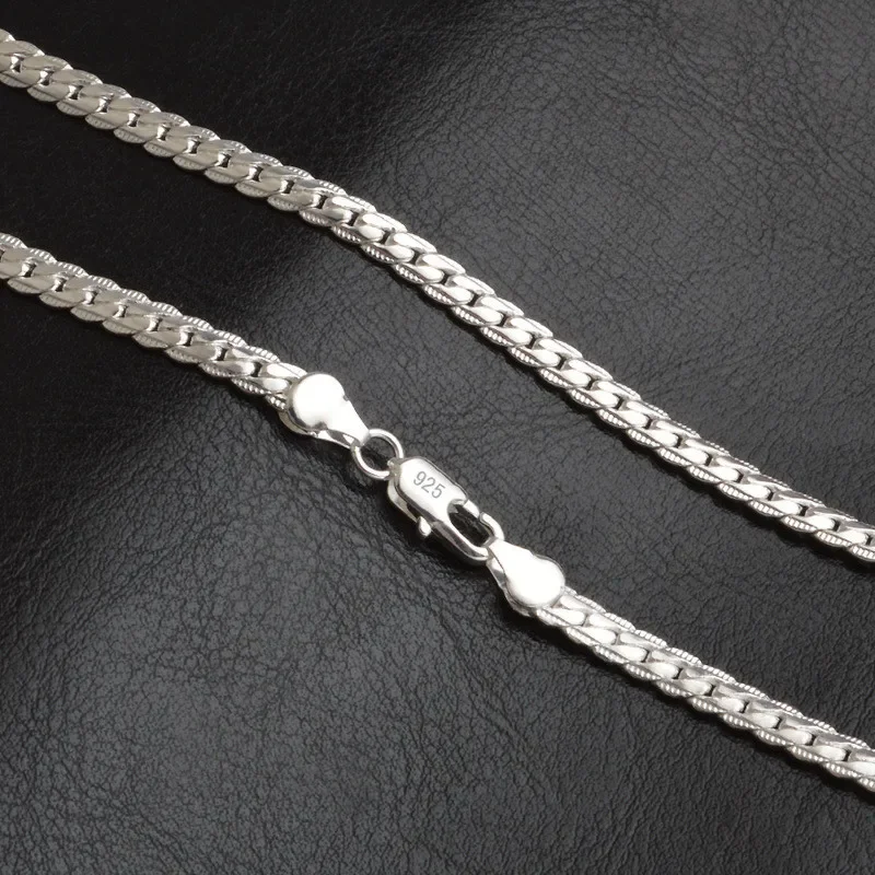 925 Sterling Silver 6mm Side Chain 8/18/20/22/24 Inch Necklace for Woman Men Fashion Wedding Engagement Jewelry Gift